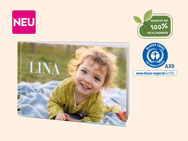 Dank des verstärkten, matten Hardcover-Einbands mit Recyclingpapier sind Ihre Erinnerungen jetzt noch besser geschützt.